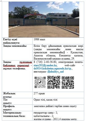 ГККП детский сад «Жулдыз» города Кокшетау при отделе образования по городу Кокшетау управления образования Акмолинской области