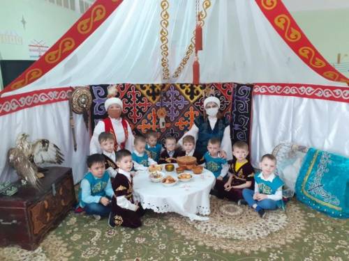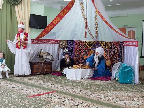 17 наурыз күні балабақшамызда 22 Наурыз мейрамына арналған «Арай», «Қарлығаш» топтарында мерекелік іс – шаралар өткізілді.Әр ойын - сауықтың барысында балалар әдемі өлеңдерін оқып, ән айтып, би билеп, өздерінің өнерлерін көрсете білді.Мерекеге Қыдыр ата келіп, балаларға ақ батасын берді, әжелер «Бесікке салу», «Тұсау кесу» рәсімдерін көрсетті. Тазша бала балалармен бірге «Теңге алу», «Орамал тастау», «Тақия тастамақ», «Арқан тартыс» деген ұлттық ойындар ойнады. Мерекелік іс – шара балаларға көтеріңкі көңіл – күй сыйлап, ерекше әсер етті.