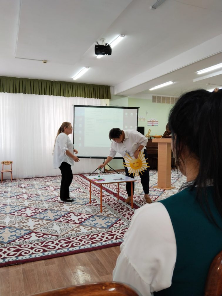 Кеңес педагог-психолог Мусаинова А.А. жүргізген «Педагогикалық күн шуағы» атты тренинг-ойынмен басталды. Бұл жаттығу жылы атмосфера құруға, ұжымды біріктіруге және жаңа оқу жылына оң көзқарас қалыптастыруға ықпал етті.