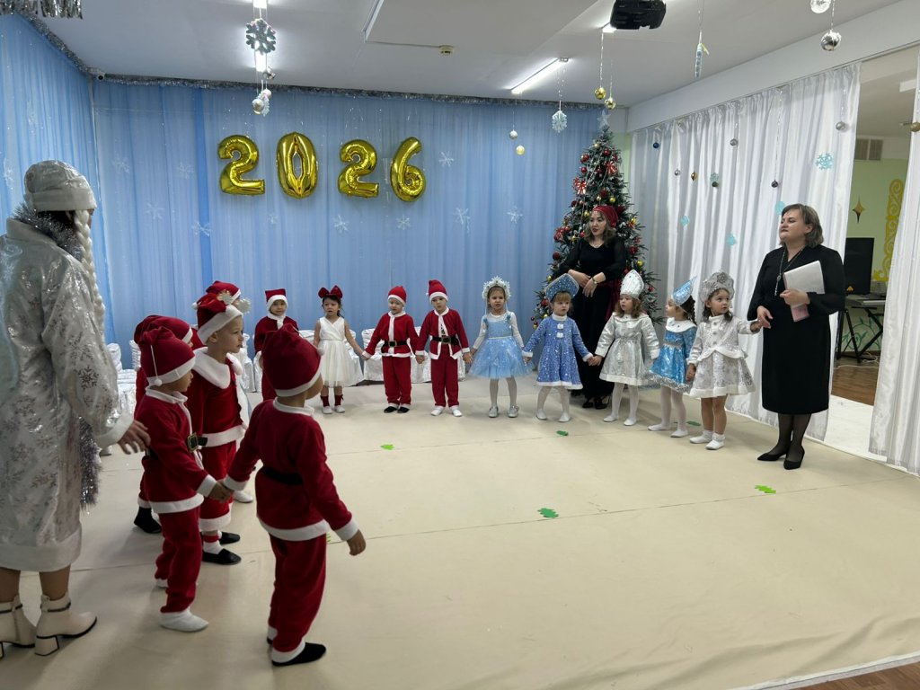 Ең кішкентай тәрбиеленушілер үшін бұл — алғашқы Жаңа жылдық ертеңгілік болды. Іс-шаралар өте сәтті өтті: балалар мерекеге белсенді қатысып, ертегі кейіпкерлерін қызыға тамашалады, хороводтар биледі, ойындарға қатысты және Аяз атаның сыйлықтарына шын жүректен қуанды. Бұл бүлдіршіндер үшін ұмытылмас, сиқырлы сәттерге толы мереке болды.