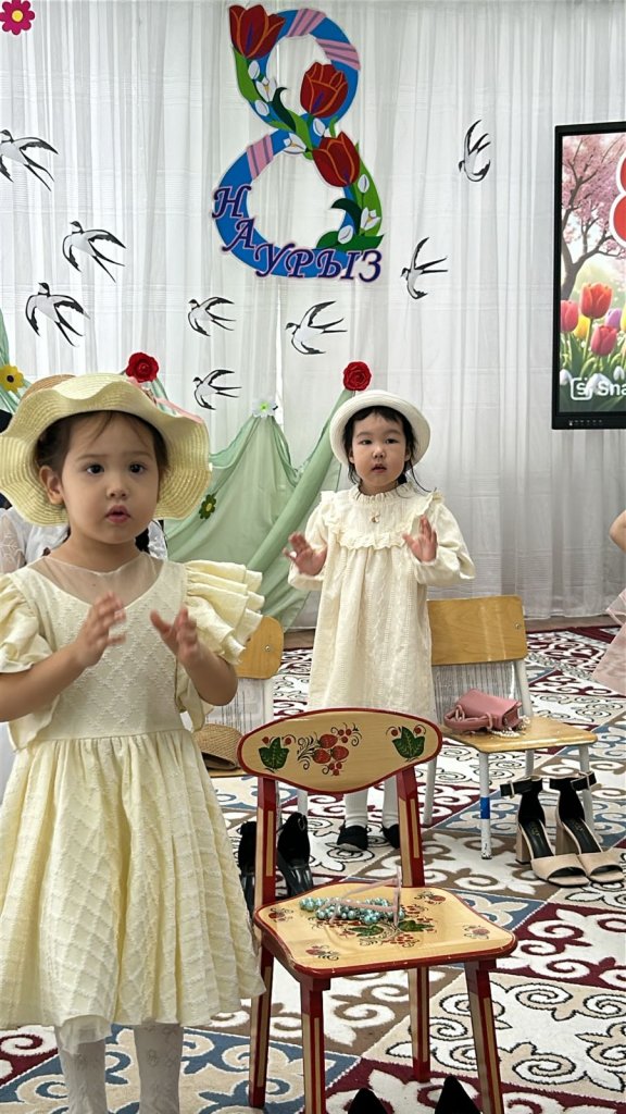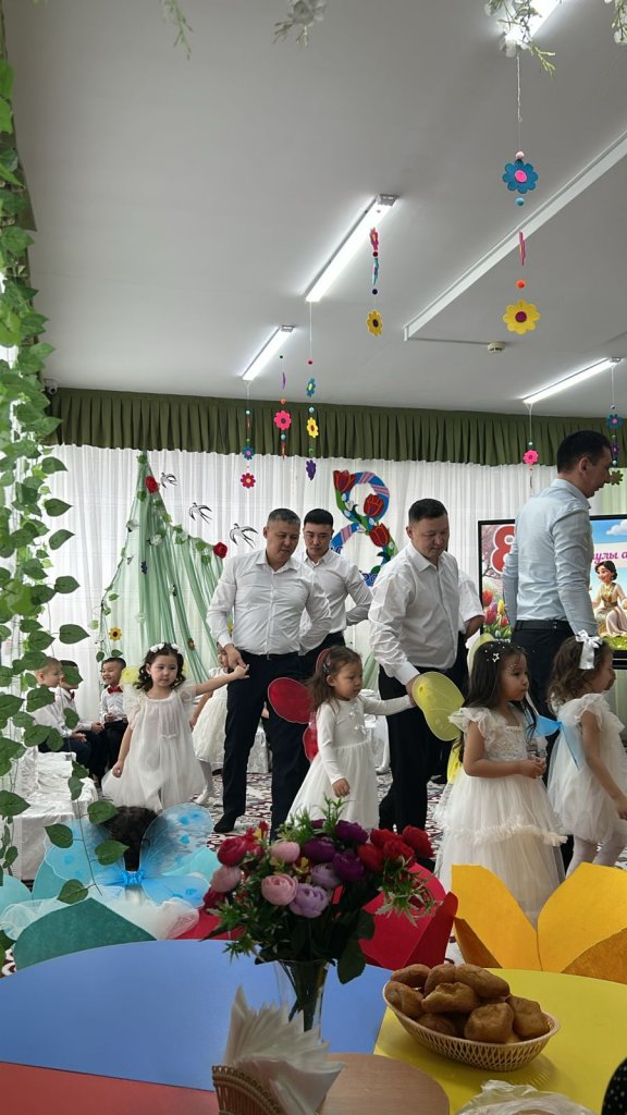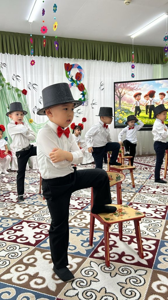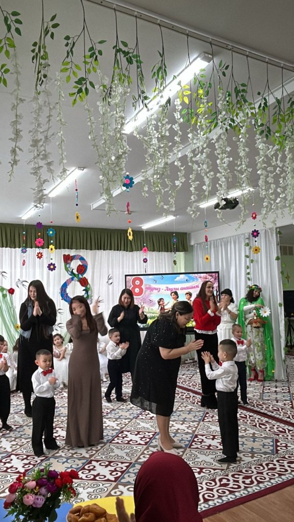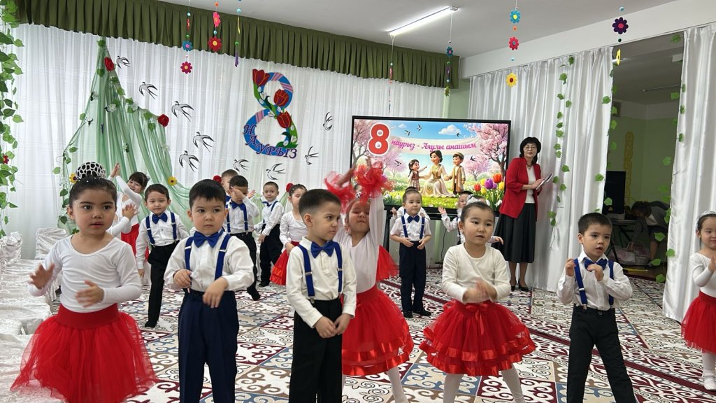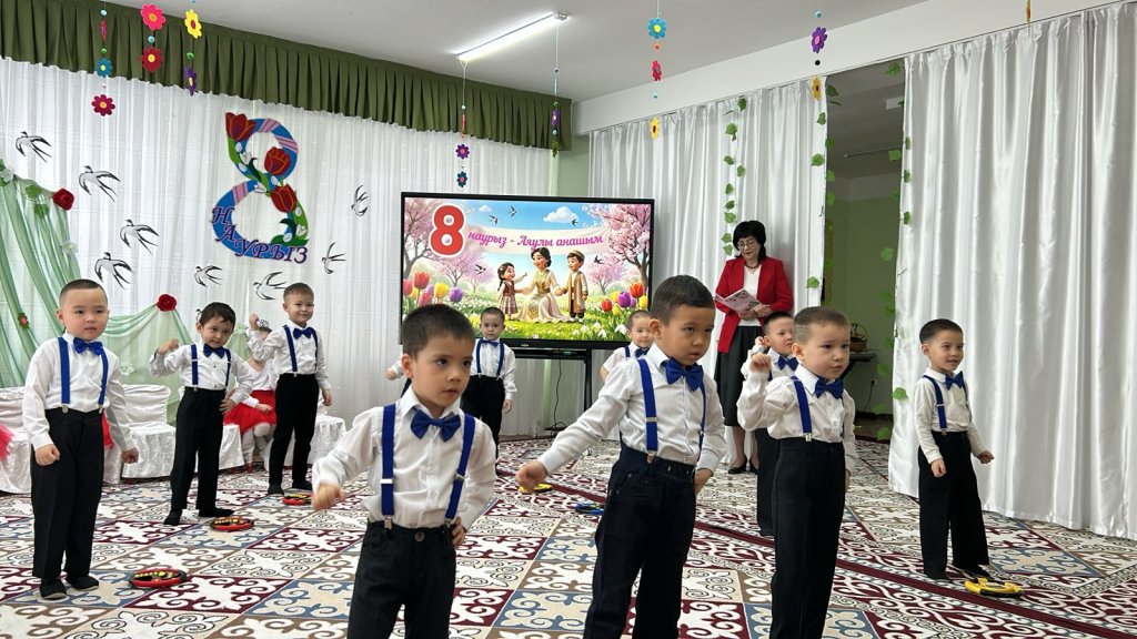 Халықаралық әйелдер күні – 8 наурыз мерекесі қарсаңында балабақшамыздың барлық топтарында мерекелік іс-шаралар өтті. Балалар аналар мен әжелеріне арнап жүрекжарды құттықтаулар, өлеңдер, әндер мен билер дайындап, өз қолдарымен жасаған сыйлықтарын тарту етті. Әсіресе №2 «Балапан» тобында өткен мереке ерекше әсерлі әрі қызықты өтті. Мерекеге ата-аналар белсенді қатысып, әкелер қыздарымен бірге «Әкелер мен қыздар биін» орындады. Бұл көрініс көрермендердің зор қошеметіне ие болып, көпшілікке көтеріңкі көңіл-күй сыйлады. «Балдырған» тобында мерекелік іс-шара ерекше форматта - «Мамочки TV – 2026» атты мерекелік телебағдарлама түрінде ұйымдастырылды. Бағдарлама «Пока все дома», «Большая стирка», «Смак», «Модный приговор», «Шоу Голос» және «Танцы без границ» атты түрлі телебағдарлама айдарлары арқылы көрсетілді. Мереке барысында бейнерепортаждар мен балалардан алынған шағын сұхбаттар ұсынылып, іс-шараны одан әрі қызықты әрі есте қаларлықтай етті. Балалар өз өнерлерін шабытпен көрсетіп, шығармашылық қабілеттерін танытты. Аналар да мерекелік бағдарламаға белсенді қатысып, түрлі қызықты ойындар мен сайыстарға қатысты. Соның ішінде балалар өздерін кішкентай сәнгерлер ретінде көрсетіп, аналарына ерекше сән үлгілерін дайындады. Тіпті ең кішкентай бүлдіршіндердің өзі мерекеге белсене қатысып, ойын ойнап, ән айтып, ата-аналарына шынайы күлкілері мен қуаныштарын сыйлады. Сонымен қатар би нөмірлерінің жоғары деңгейде дайындалғанын ерекше атап өткен жөн. Балабақша хореографының кәсіби жұмысының арқасында билер көркемдік тұрғыдан жоғары деңгейде қойылып, балалар оларды сенімді әрі үлкен ықыласпен орындады. Балабақшаның музыка жетекшілері де мерекенің жоғары деңгейде өтуіне үлкен үлес қосты — балалар әндерді әдемі әрі әсерлі орындап, мерекеге ерекше жылылық пен көңілді атмосфера сыйлады. Балалардың әсерлі өнер көрсетулері аналардың жүрегін тебірентіп, балаларына деген қуаныш пен мақтаныш сезімінен көздеріне жас алды. Мерекелік іс-шаралар жылы, достық әрі қуанышты атмосферада өтіп, барлық қатысушыларға көтеріңкі көңіл-күй, жарқын эмоциялар және көктемгі шаттық сыйлады